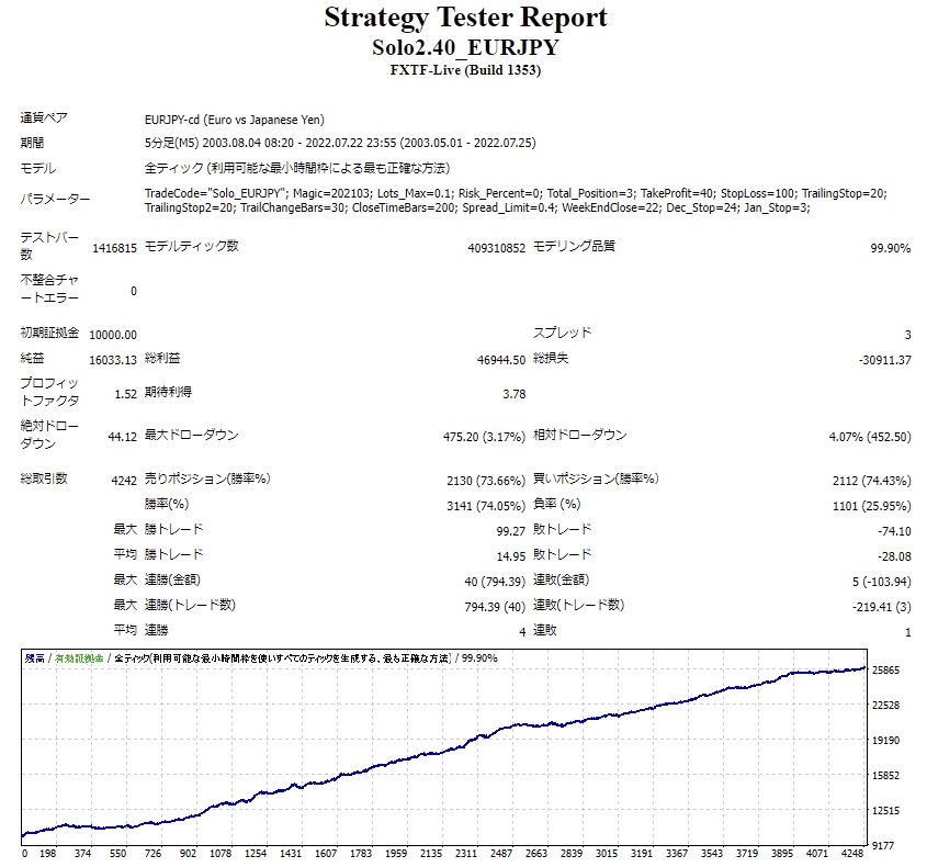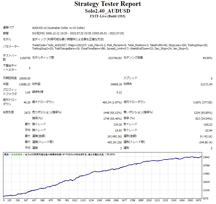 通貨ペアごとに最適化した1ポジション運用のSolo2を一つのMT4上で運用することで、調和(accord)し合いながら稼働します。