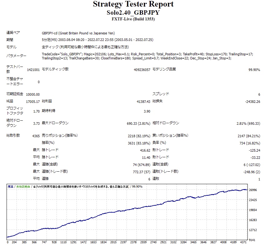 Increasing the lot size forcibly due to a high winning rate can, in rare instances, depending on the EA, lead to substantial Pips loss when a loss occurs. It is crucial to verify the SL Pips and the number of positions held before operating with an appropriate lot.