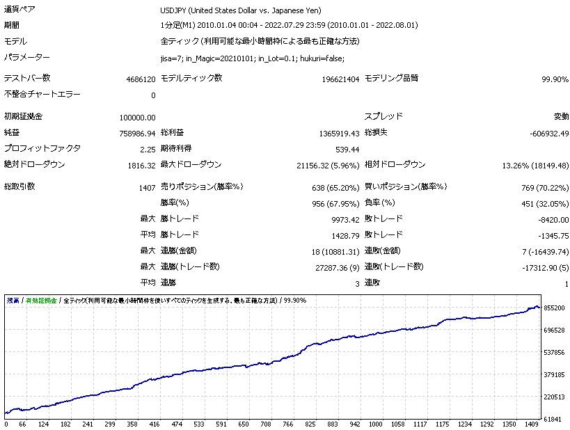 ※バックテストはTDSヒストリカルデータをしようしており、スプレッドも変動スプレッドなので実トレードと近い結果となっております。