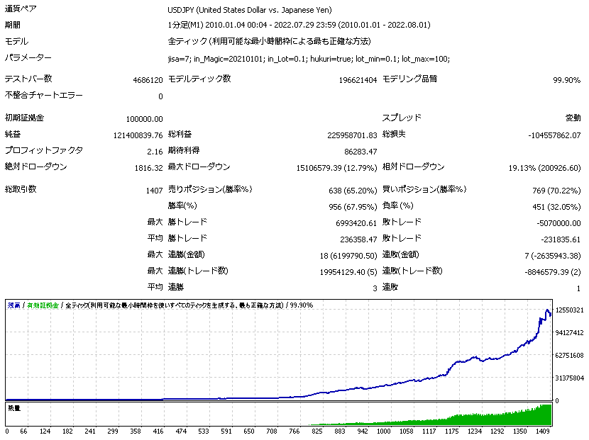Increasing the lot size forcibly due to a high winning rate can, in rare instances, depending on the EA, lead to substantial Pips loss when a loss occurs. It is crucial to verify the SL Pips and the number of positions held before operating with an appropriate lot.