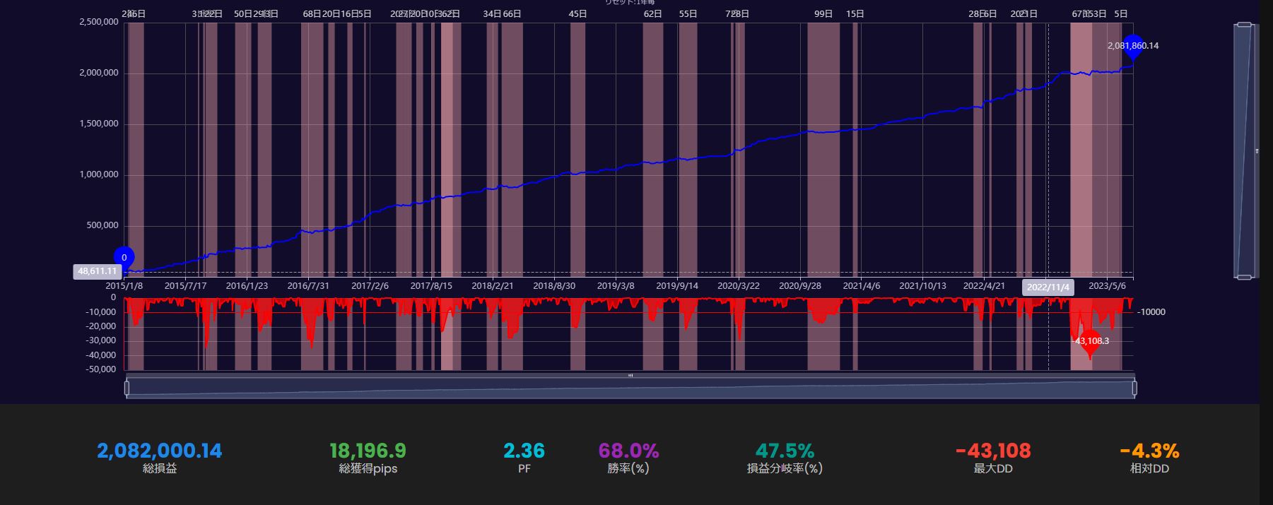 以下はTDSデフォルト設定でのバックテストデータとなります。