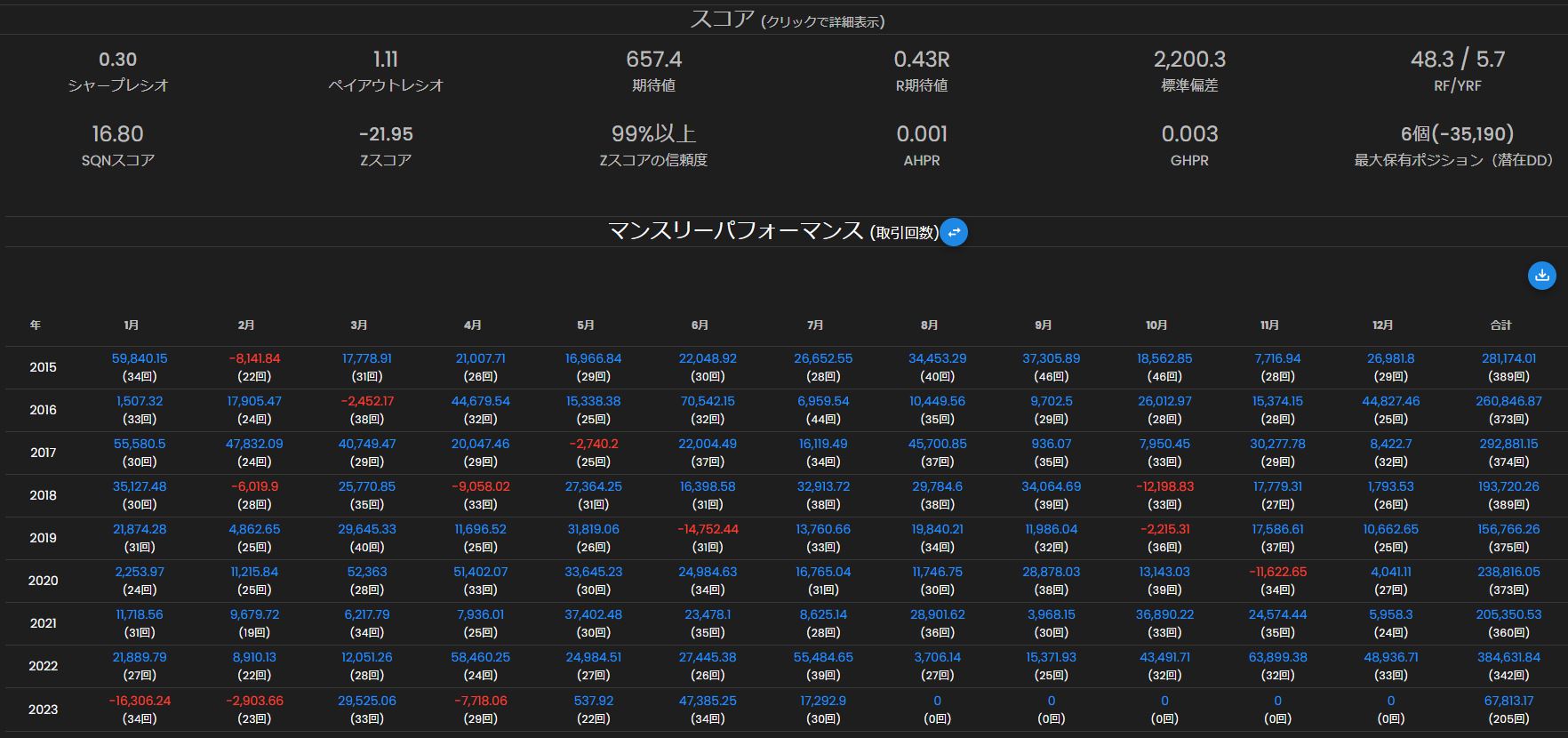 また、BTなどの過去検証において統計的に優位性のない時期や日を抑制することで無駄なエントリーをなくしパフォーマンスを改善することができます。