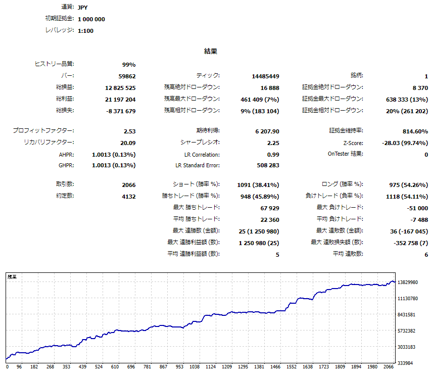 内部ロジックによる損切りもありますので、安心して運用できる設計になっています。 相関性の低い、違うタイプの他のEAとのポートフォリオに組み込むのもおすすめです。