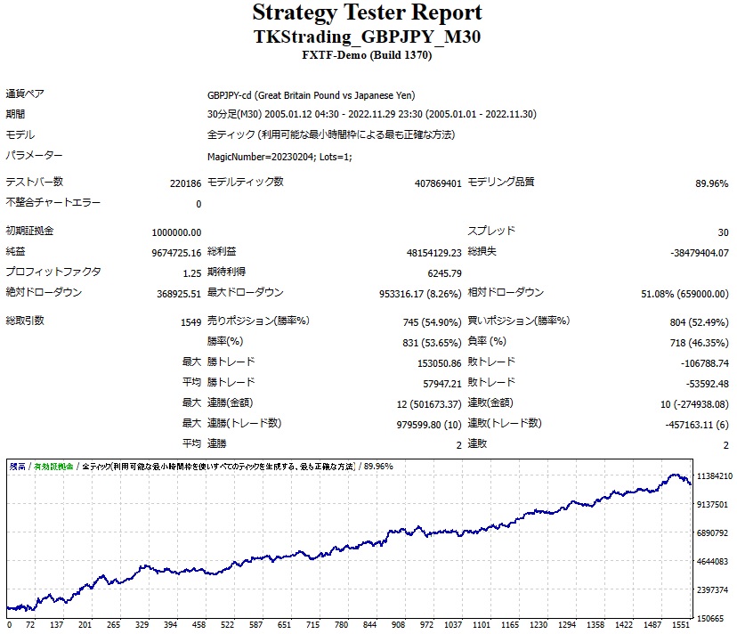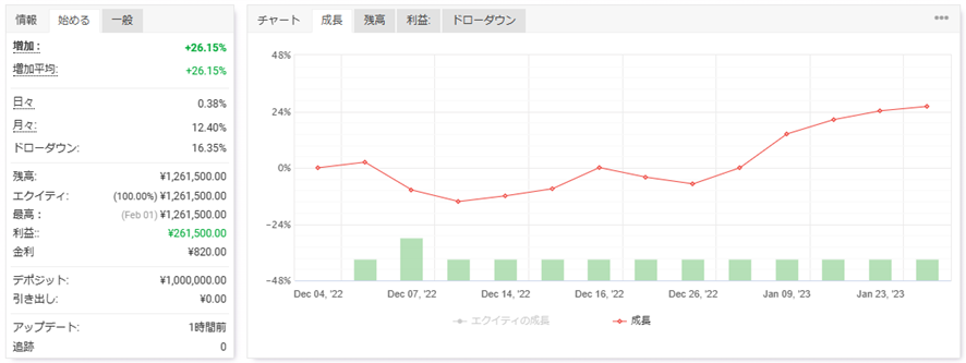・結果:下記フォワードテスト成績チャートを参照ください。