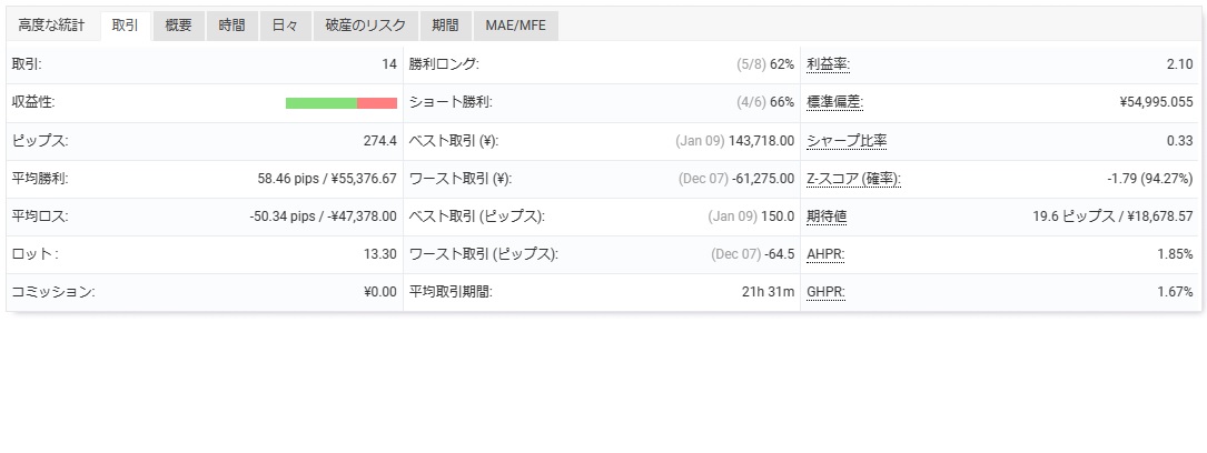 Increasing the lot size forcibly due to a high winning rate can, in rare instances, depending on the EA, lead to substantial Pips loss when a loss occurs. It is crucial to verify the SL Pips and the number of positions held before operating with an appropriate lot.
