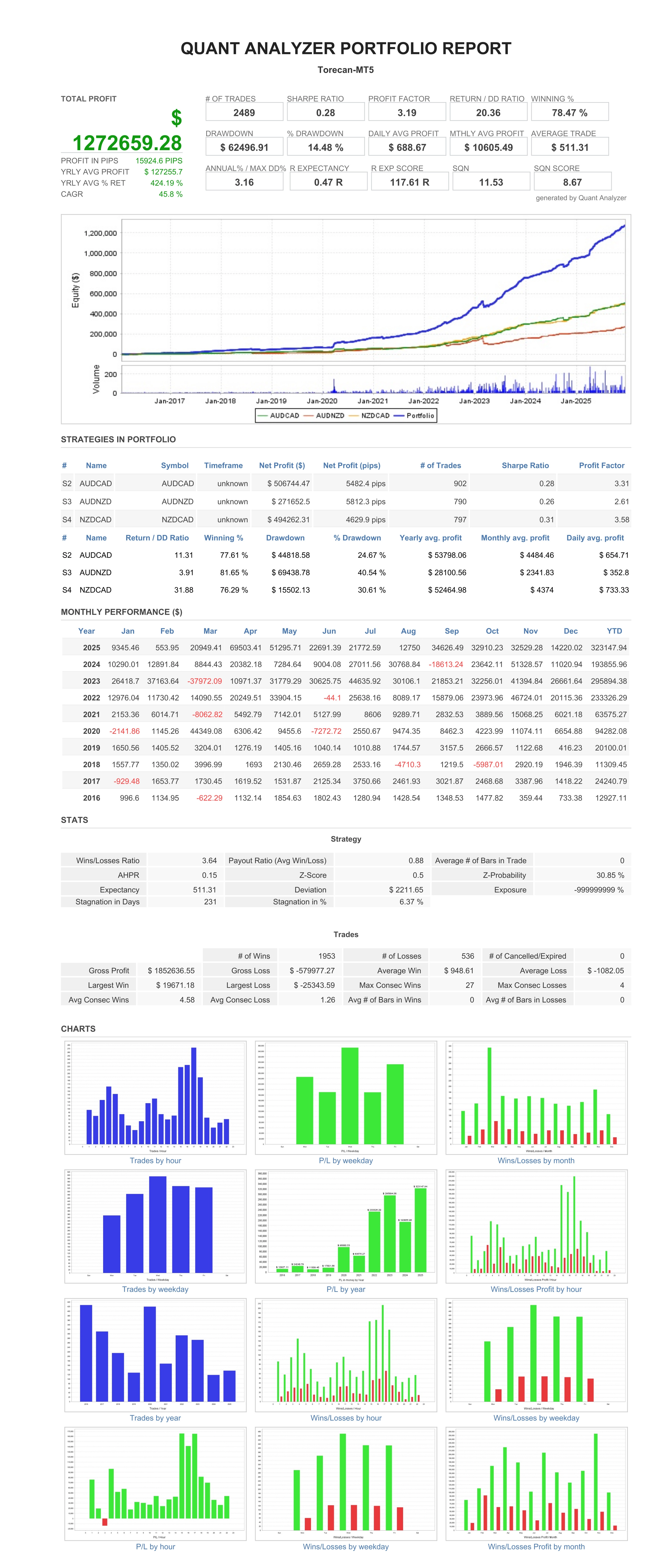 とれキャン△は平均回帰傾向の強い3通貨(AUD,CAD,NZD)に着目し、逆張り戦略を行うEAです。トレード手法としてグリッドを用いますが、両建てによるセキュリティ機能を搭載しており、ストップアウトになりにくい設計にしてあります。各種フィルターも充実しており、厳選したエントリーを行います(そのため、エントリー頻度は高くありません)。また、入力パラメーターも各種取り揃えているため、お好みによりEAの動作を変更して運用することが可能です。 とれキャン△はあなたの旅を存分にサポートいたします!