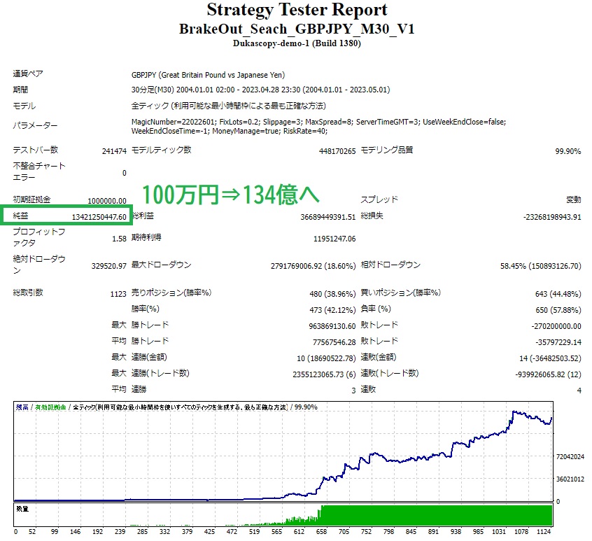 大雑把に申し上げますと、 バックテストではリカバリーファクター、設定スプレッド、期待利得、バックテスト期間が重要です。