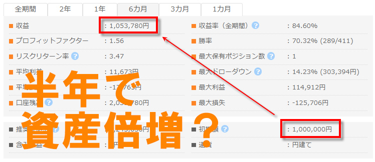 本EAの運用は投資信託と同じ、長期投資となります。状況によって数か月も利益を得られない場合もあります。十分ご理解ください。