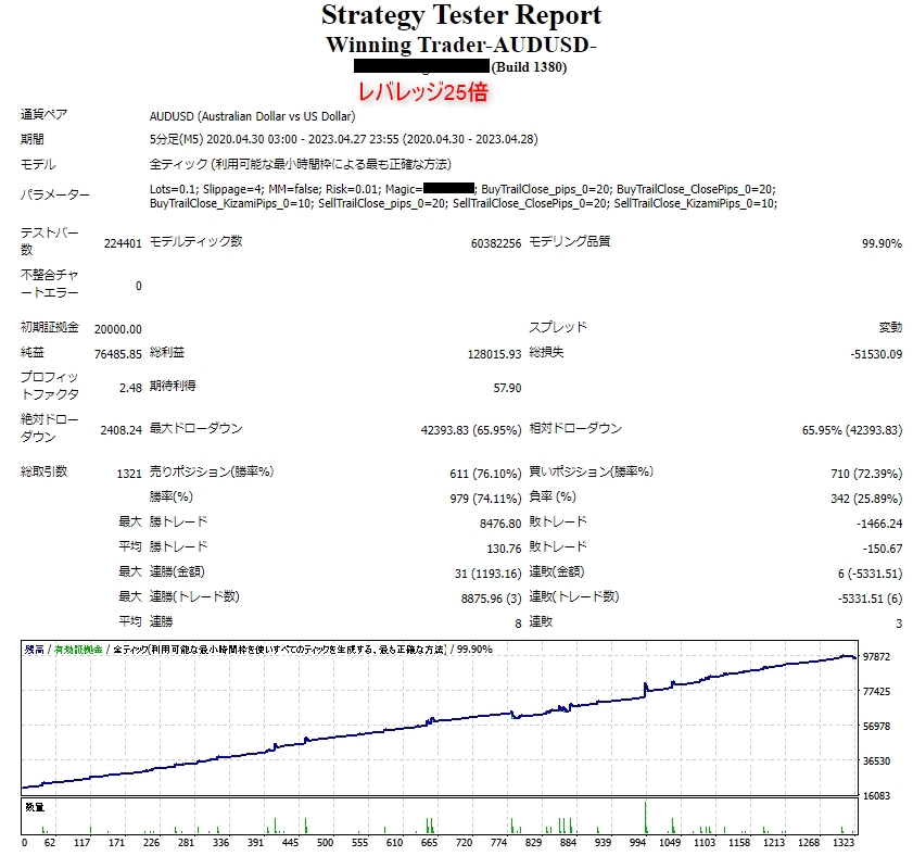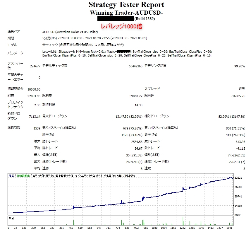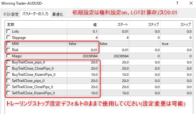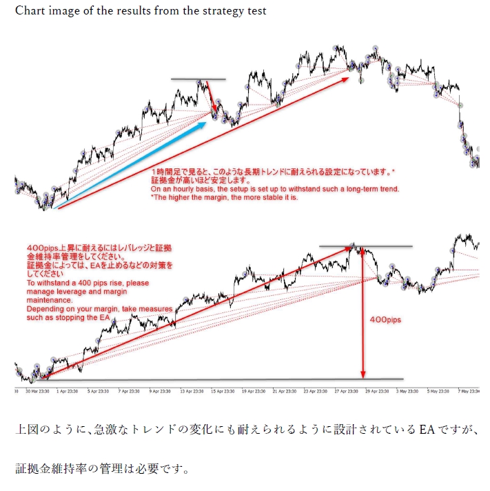 Increasing the lot size forcibly due to a high winning rate can, in rare instances, depending on the EA, lead to substantial Pips loss when a loss occurs. It is crucial to verify the SL Pips and the number of positions held before operating with an appropriate lot.