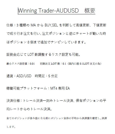 Winning Trader-AUDUSD-は準張りナンピンで確実に波をとらえていきます。