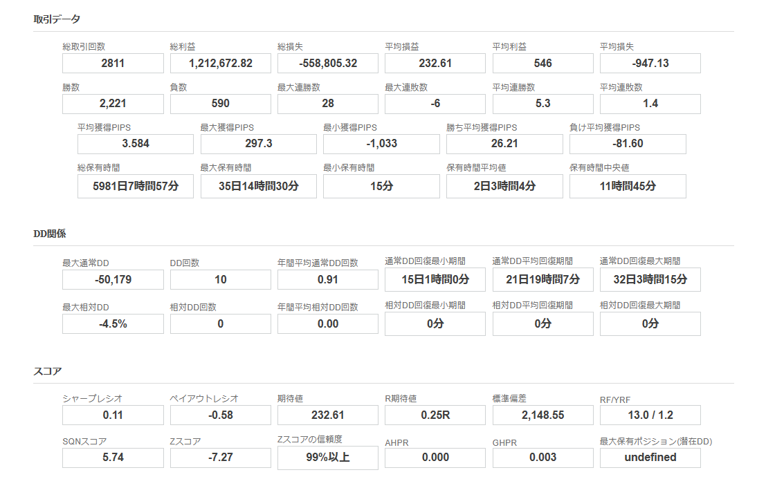 最大同時保有ポジション8は2015年12月18日から2016年1月19日までに起こった最大ドローダウンで