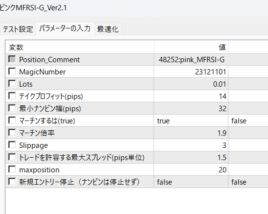 新規エントリー停止:trueにしますと新規のエントリーはしません。現在保有のポジションはナンピンは制限しません決済で終了となります。