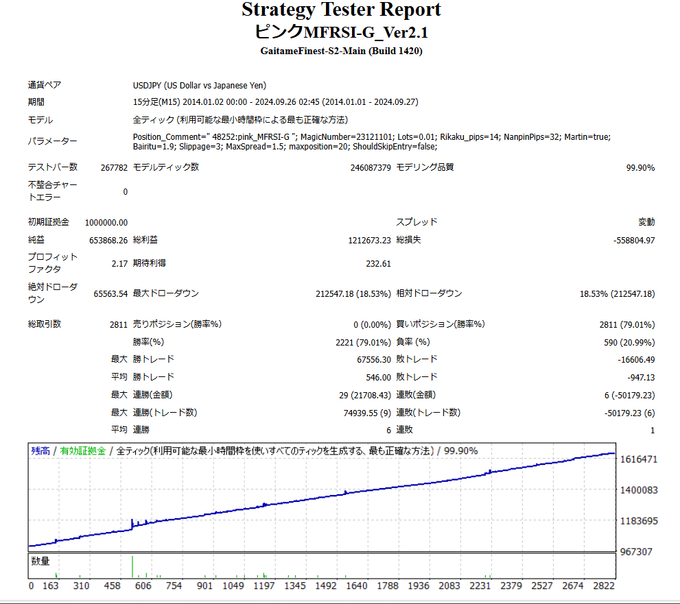 Increasing the lot size forcibly due to a high winning rate can, in rare instances, depending on the EA, lead to substantial Pips loss when a loss occurs. It is crucial to verify the SL Pips and the number of positions held before operating with an appropriate lot.