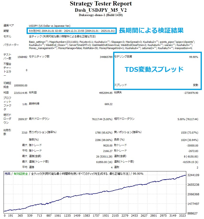 (変動スプレッド0.5pips~10pips、スプレッドフィルター3pips)