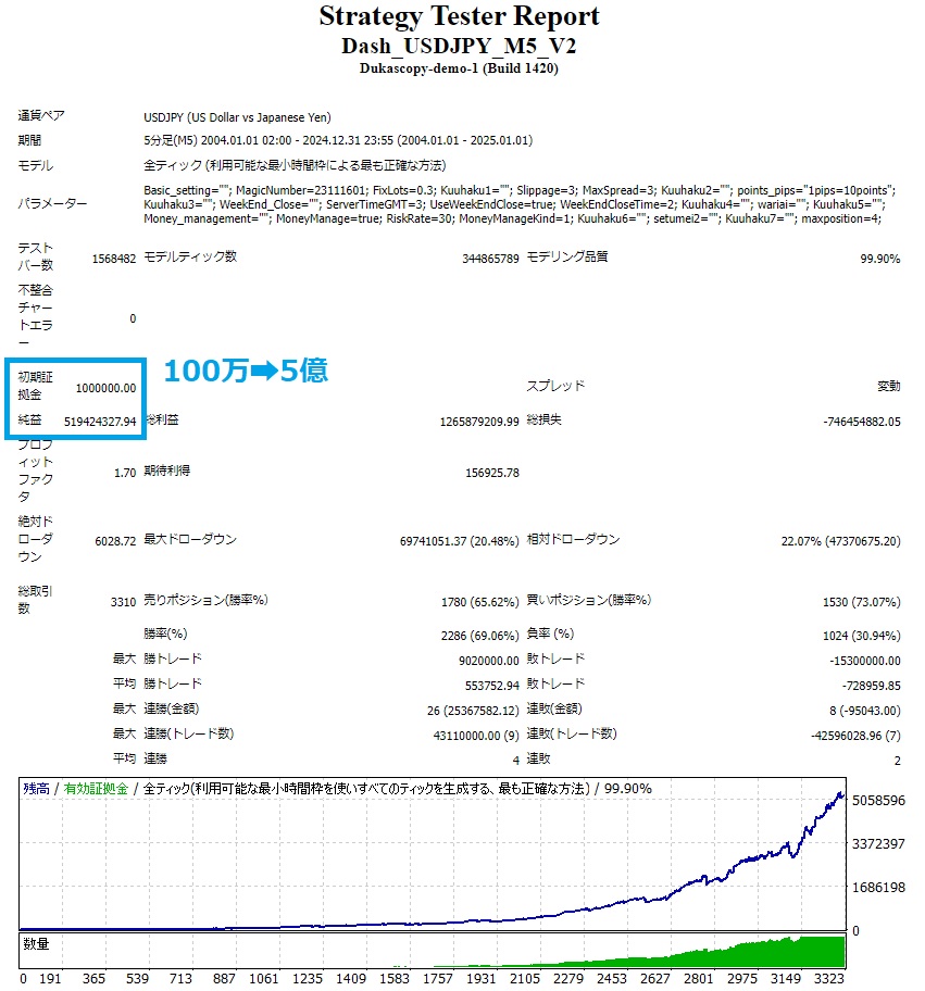Increasing the lot size forcibly due to a high winning rate can, in rare instances, depending on the EA, lead to substantial Pips loss when a loss occurs. It is crucial to verify the SL Pips and the number of positions held before operating with an appropriate lot.