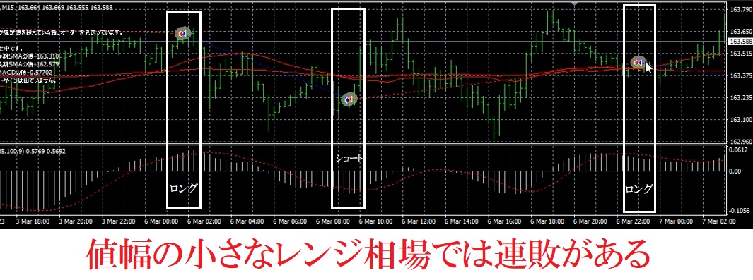 レンジ相場の波が合わないと、小さな損切りを繰り返すことがあります