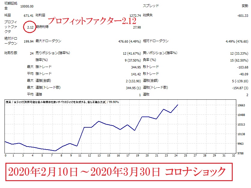続いて2020年のコロナ相場でのバックテスト結果