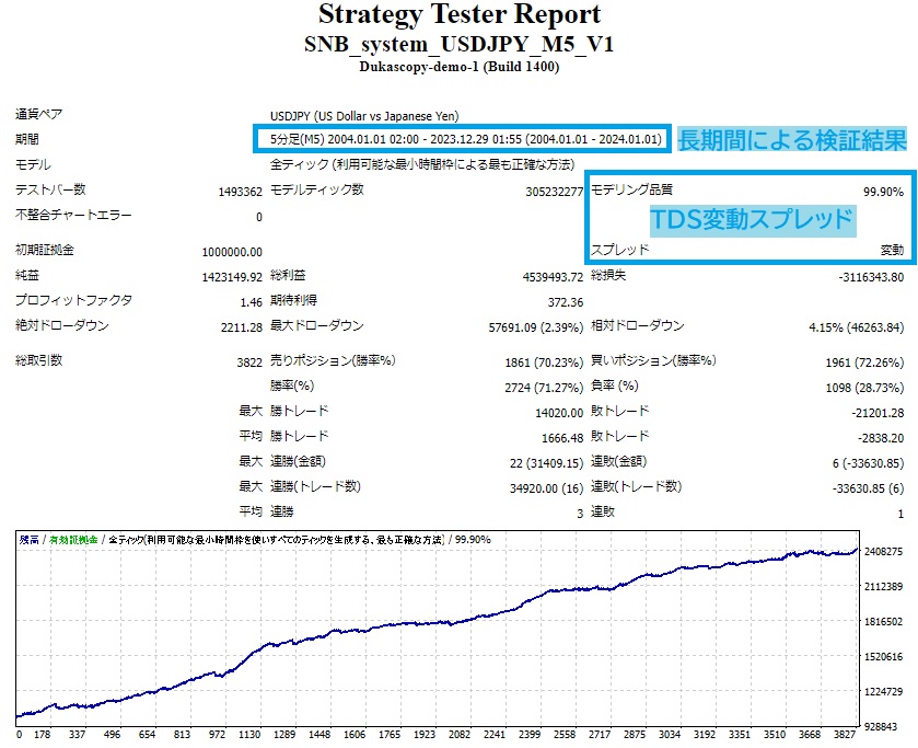 ●信頼性の高いと謳われるTDS変動スプレッドによる検証結果。 (0.5pips~10pips変動・スプレッドフィルター3pips)