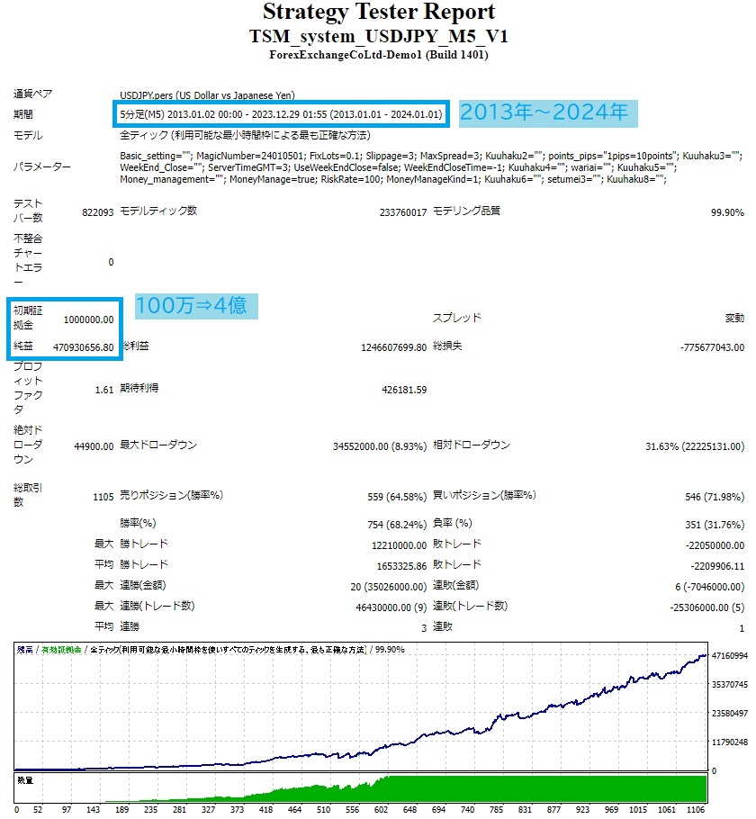 大雑把に申し上げますと、 バックテストではリカバリーファクター、設定スプレッド、期待利得、バックテスト期間が重要です。