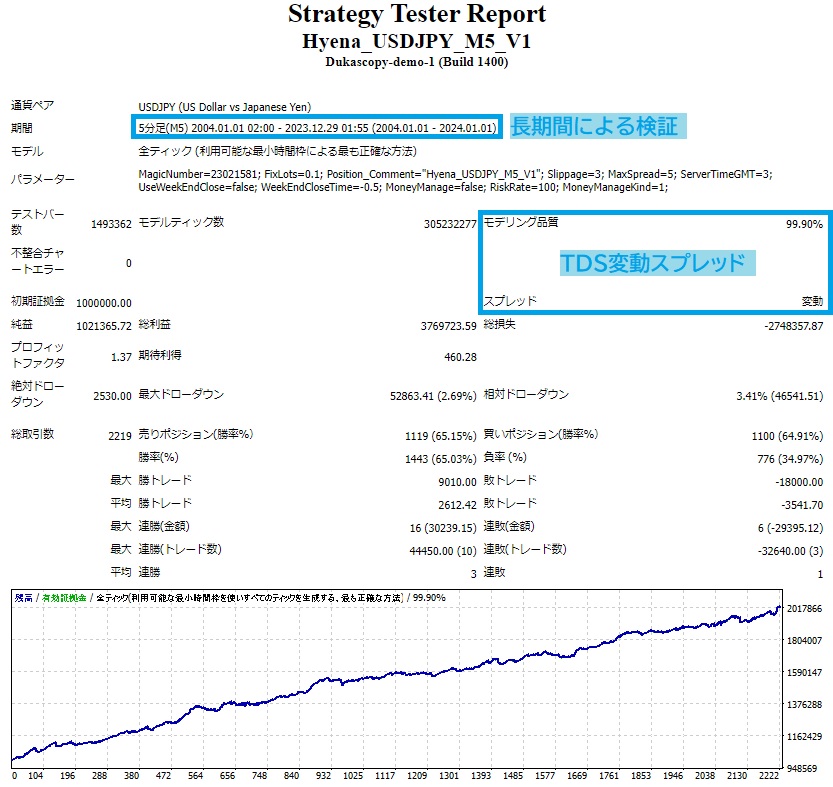 ●信頼性の高いと謳われるTDS変動スプレッドによる検証結果。 (0.5pips~10pips変動・スプレッドフィルター3pips)