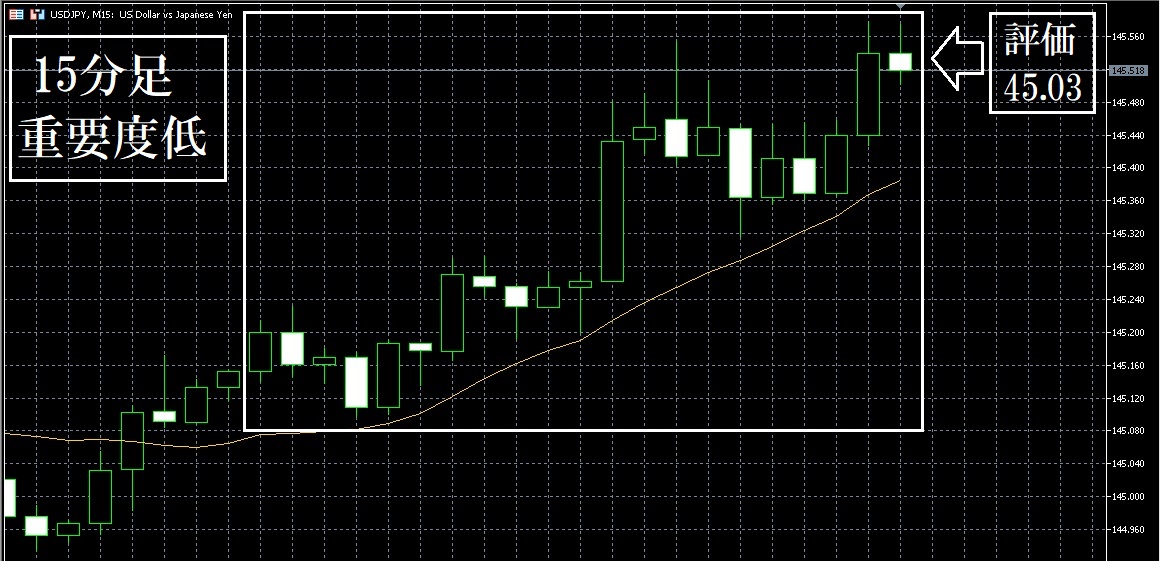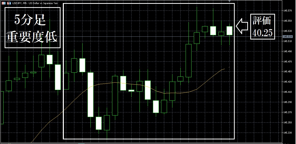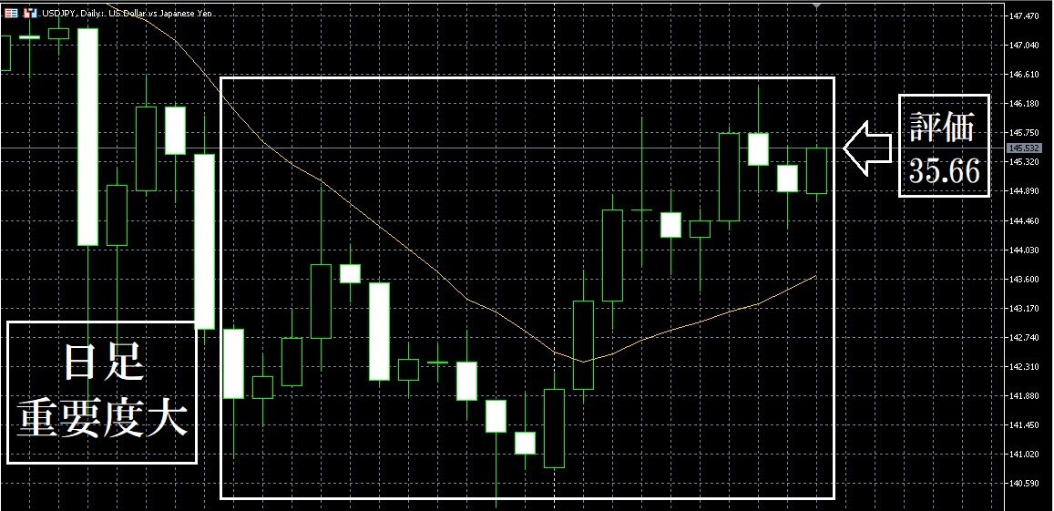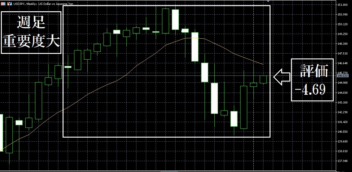 デフォルト設定では、5分足⇒重要度1、15分足⇒重要度2、1時間足⇒重要度4、4時間足⇒重要度7、日足⇒重要度9、週足⇒重要度10とし、上位足ほど数字を大きくして重要度を上げています。 この為、相場の急落局面などで逆張りでロングするといったことは無く、ドローダウンを抑えることができます。