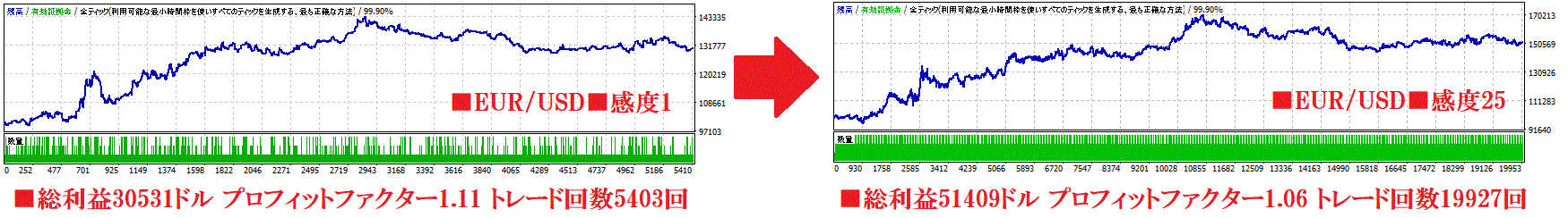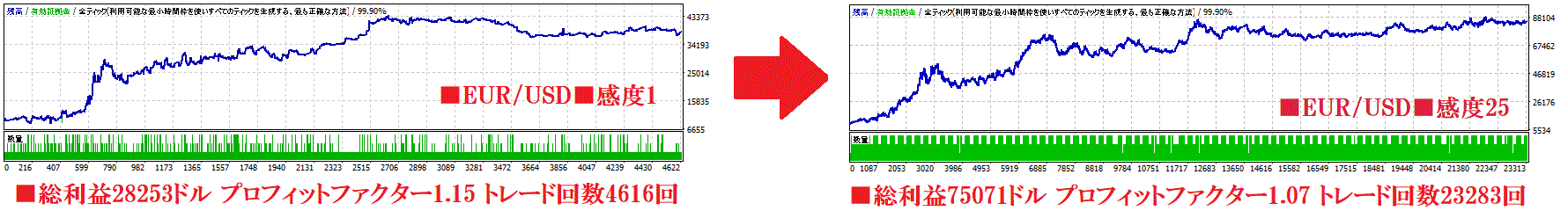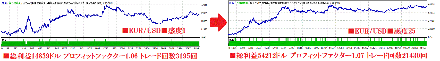 このロジックの重要度を上げるとトレード回数が大幅に増えます。