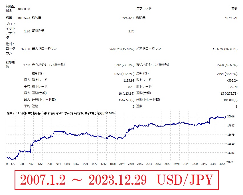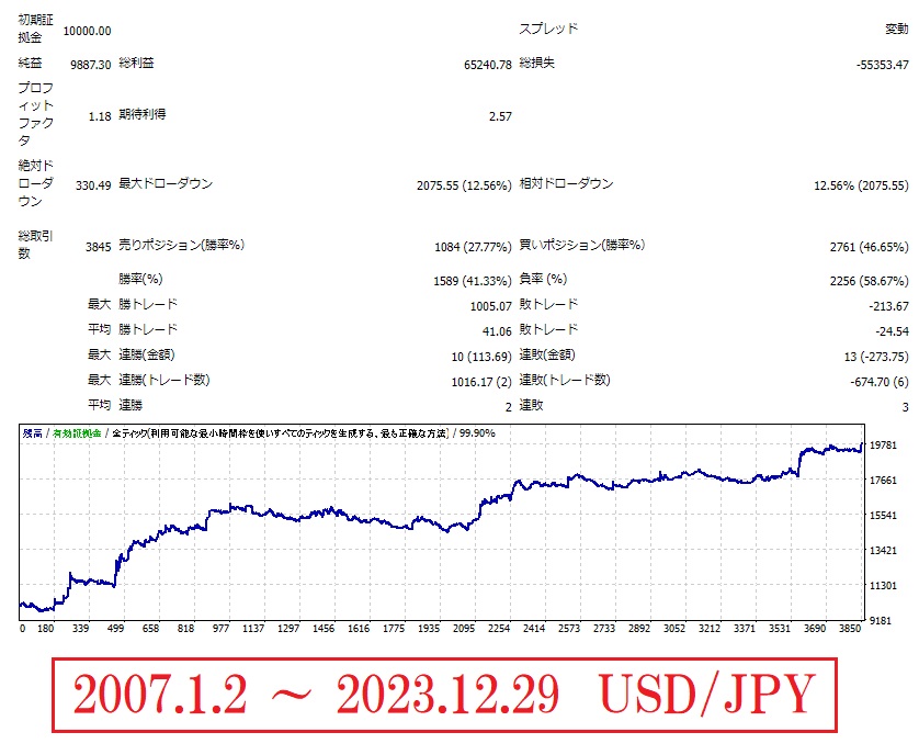 時間足や通貨ペアなどを変える場合、これらの設定を変えてバックテストを行うことで、最適な設定を探すことができます。