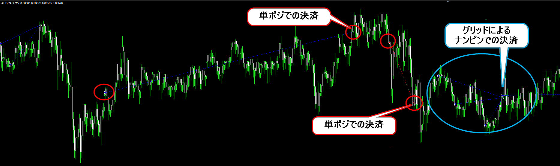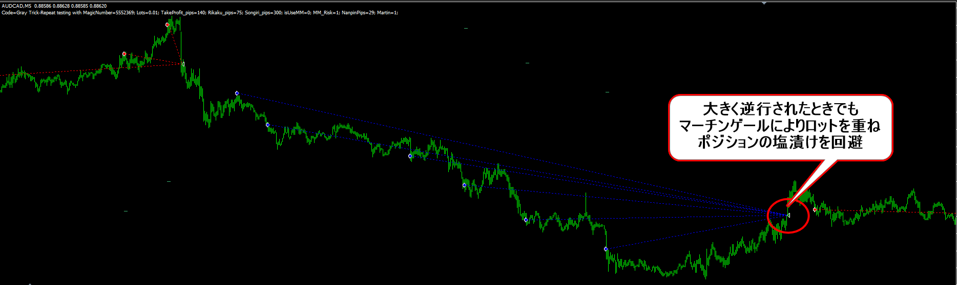 設定不要で様々な通貨で利用可能!グリッド範囲を超えたポジションを救済する機能が付いたグリッドトレード型ナンピンマーチンEA!