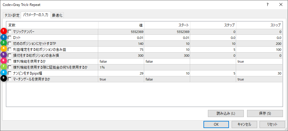 ・最大ポジション数:そのEAが理論上同時に持ちうる最大のポジション数です
