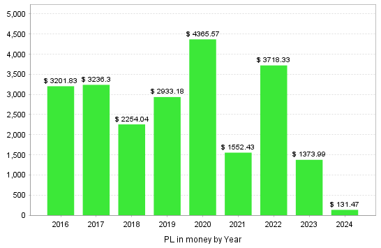 損切を前提とせず利益を積み上げるため、毎年プラスとなっております。(2024年は途中段階のため微増)