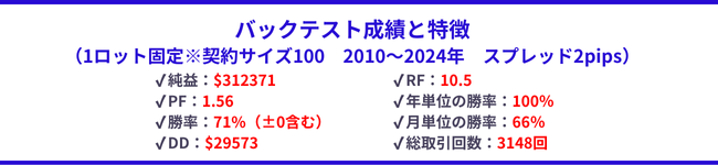 - 最適化はGMT冬+2/夏+3で行っています。その他のGMT設定でも使用可能ですが取引結果に若干差異が生じる場合があります。