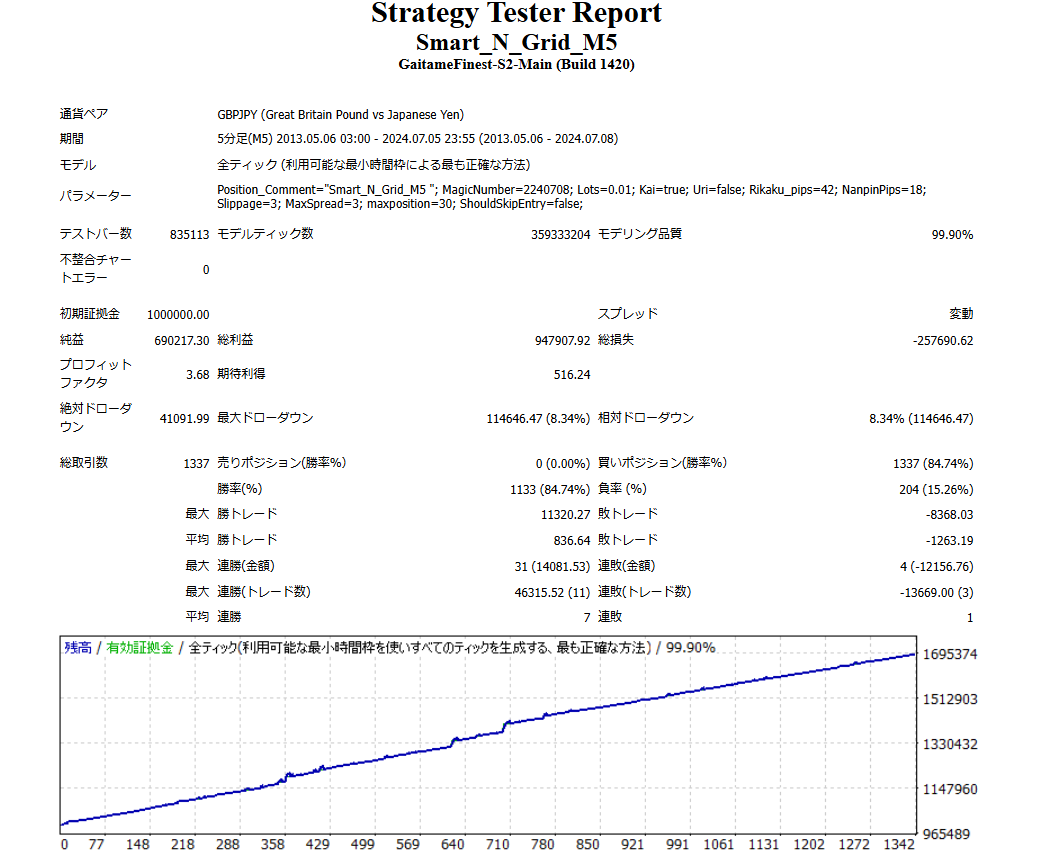 資金管理さえしっかりしておけば損失のない(含み損はあり)Gridトレードは中長期のトレードとして最適です。