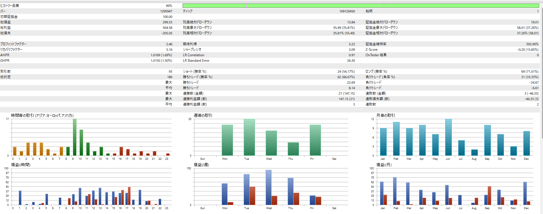 このEAは、バックテスト結果に基づいて次のような優れた特徴を持っています。