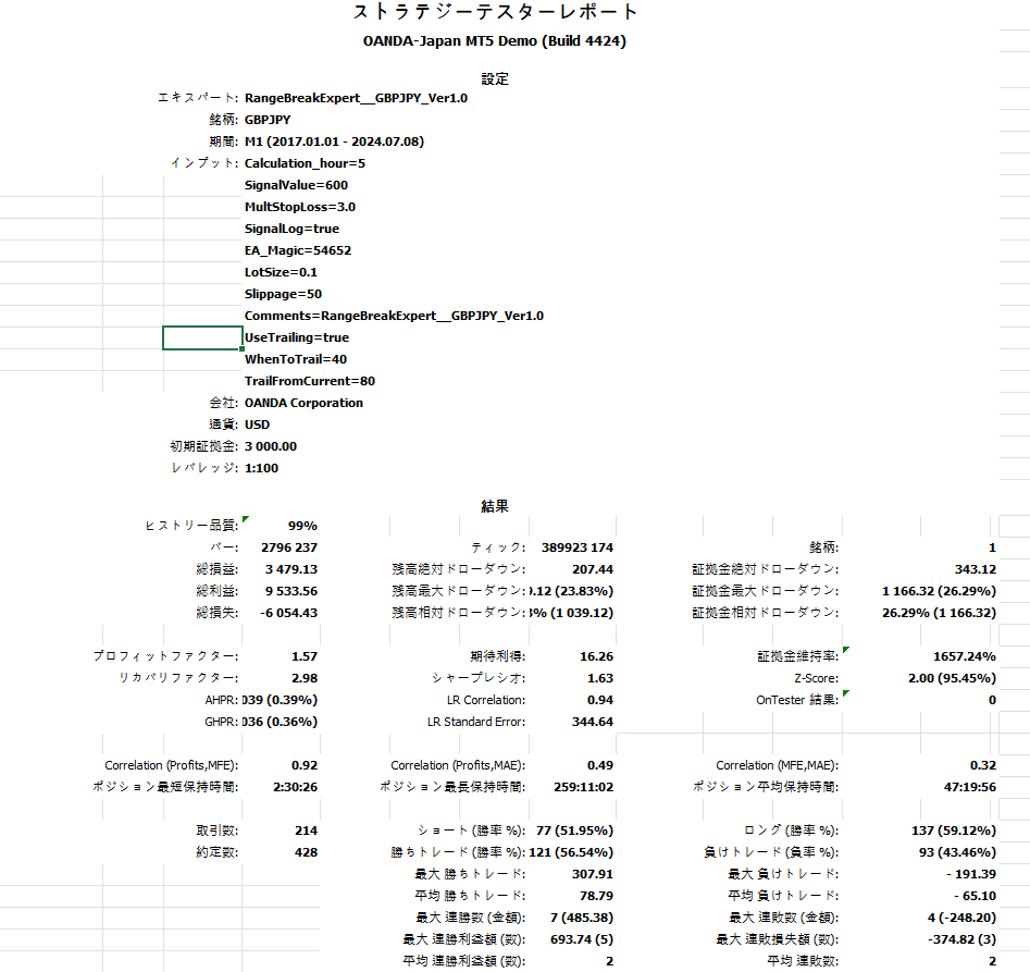 バックテスト(OANDA:2017年1月‐2024年7月)
