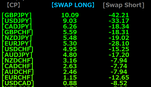 買いSwapの最も大きい通貨ペアがGBPJPY、次がUSDJPYになっています。