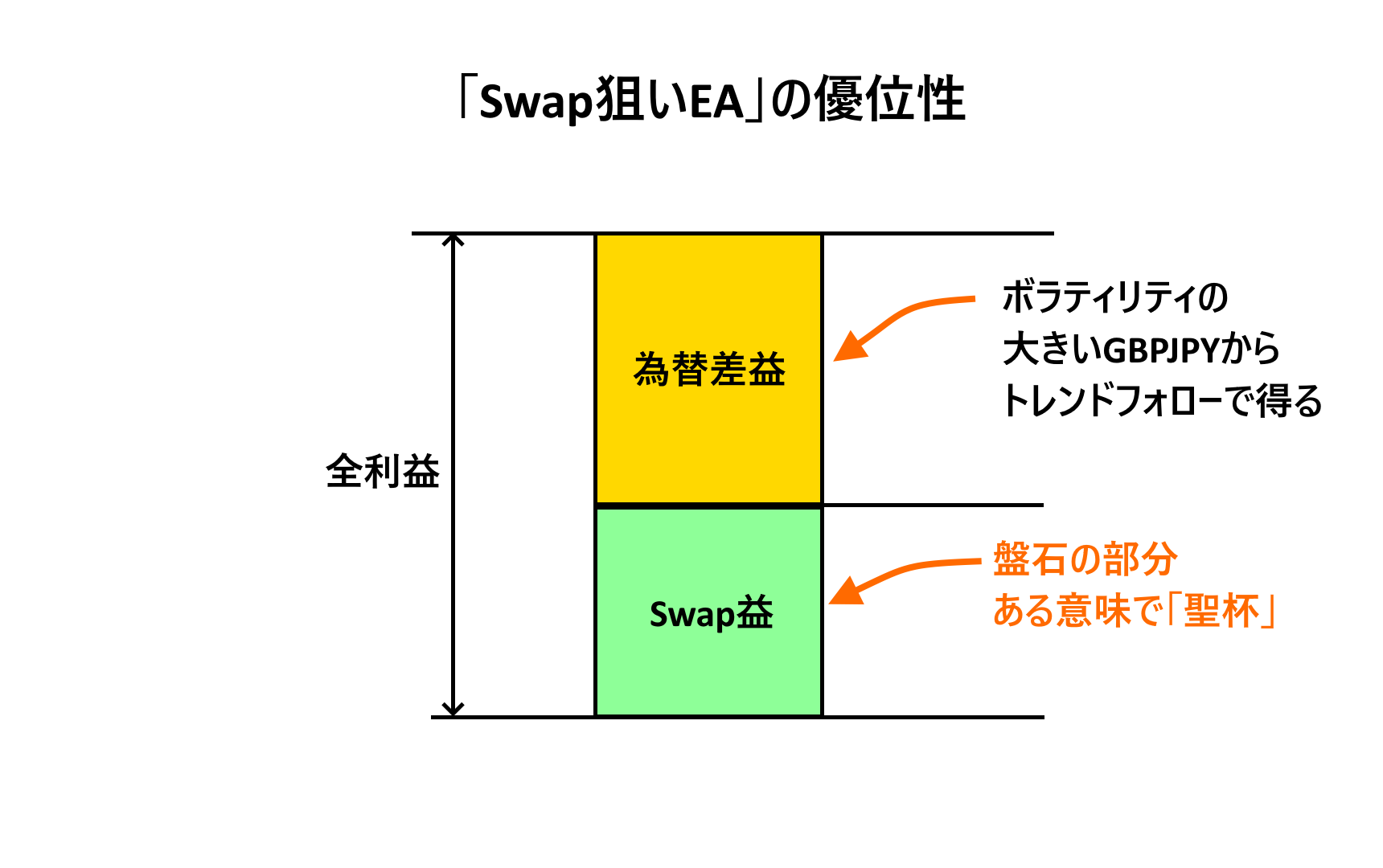 Swap狙いに特化したEAで、ほぼ完全放置したままでSwapと為替差益の両方を狙うGBPJPY専用のEAです。