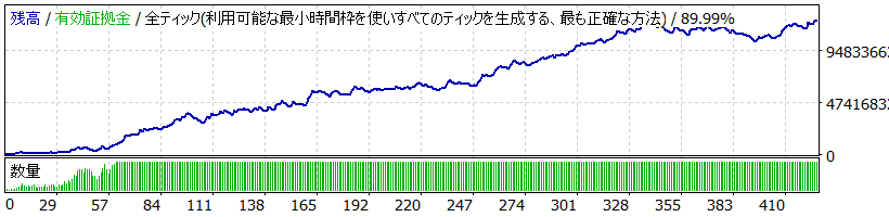 通常は、Spread損の方が、Swap益より大きいので、これを上回る上昇トレンドが発生している時だけ、ポジションを建てるという仕様になっています。その結果、ドローダウンが極端に少なく、勝率が高いEAが完成しました。