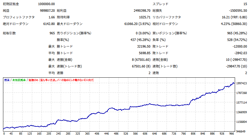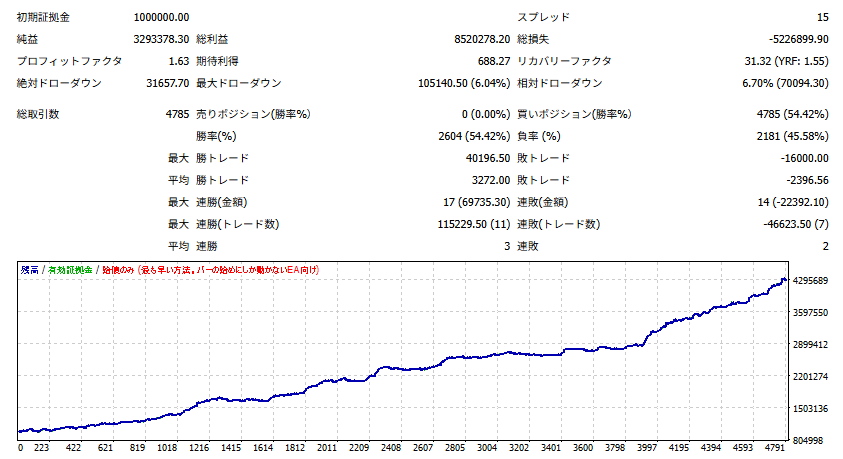 【EAの説明:ロングエントリーのみで円高でも、バックテストは右肩上がり、プラススワップも享受しながら、利益を狙うEA!】