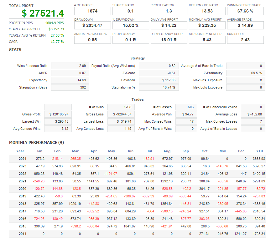 There is an absence of self-serving rule modifications, a common human tendency, such as increasing the lot size after consecutive losses in discretionary trading or, conversely, hastily securing profits with minimal gains.