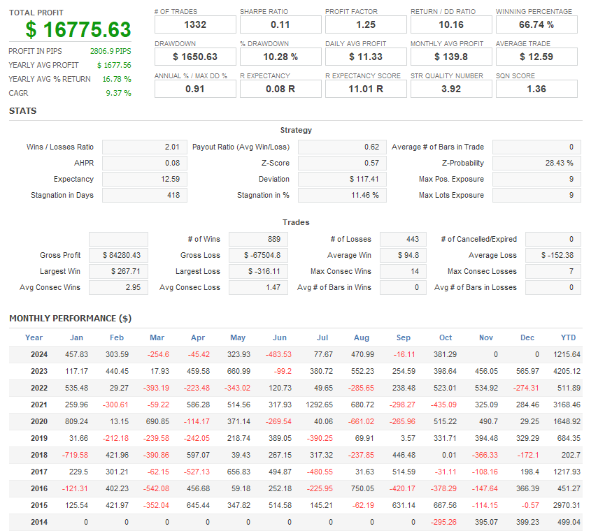・SL(Stop Loss):EAの設定上の最大損失pips(または指定された金額など)