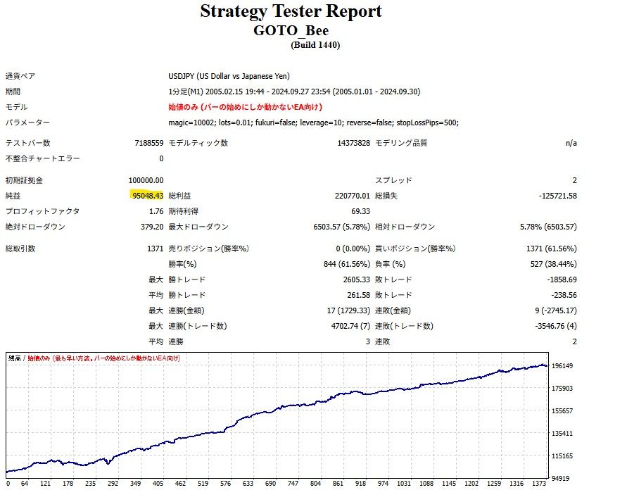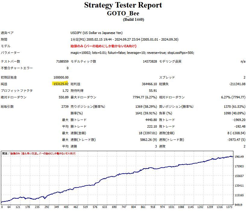 Increasing the lot size forcibly due to a high winning rate can, in rare instances, depending on the EA, lead to substantial Pips loss when a loss occurs. It is crucial to verify the SL Pips and the number of positions held before operating with an appropriate lot.
