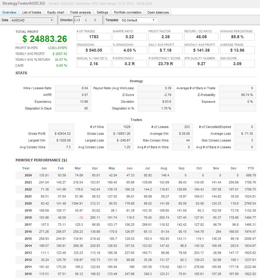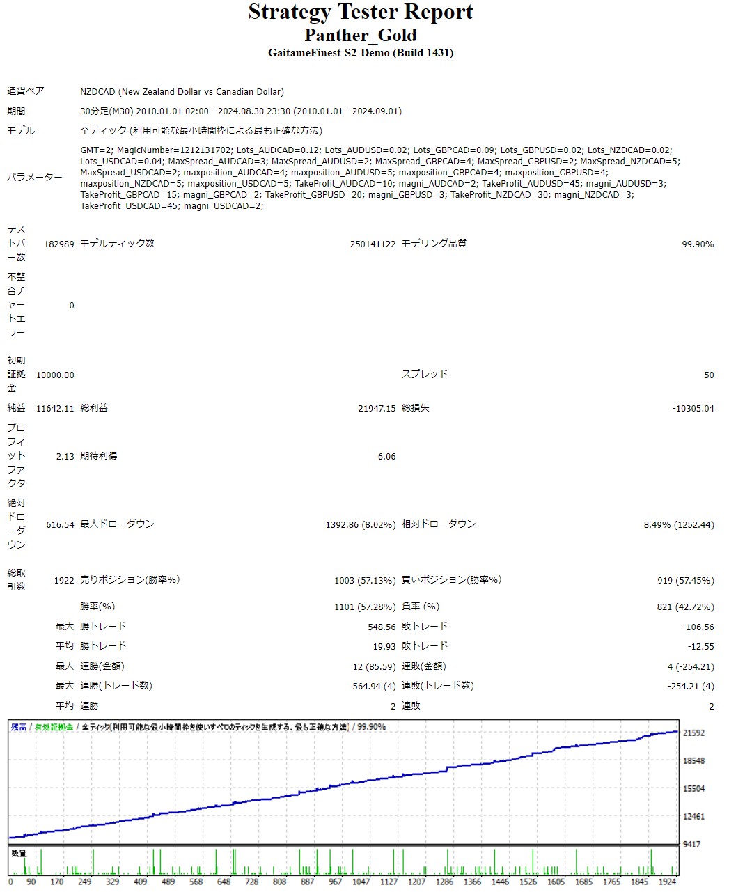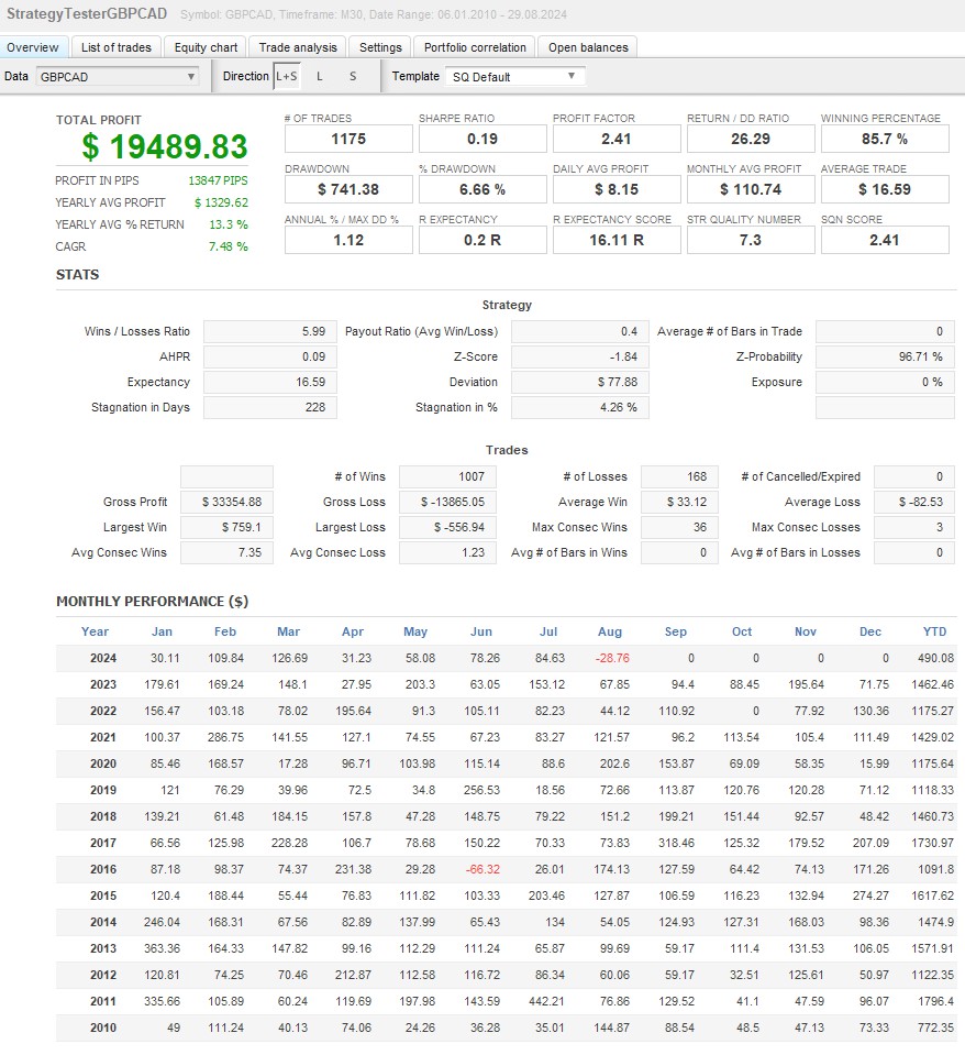 本EAは、AUD/CAD、AUD/USD、GBP/CAD、GBP/USD、NZD/CAD、USD/CADの6通貨ペアに対応し、ポートフォリオ運用を実現します。