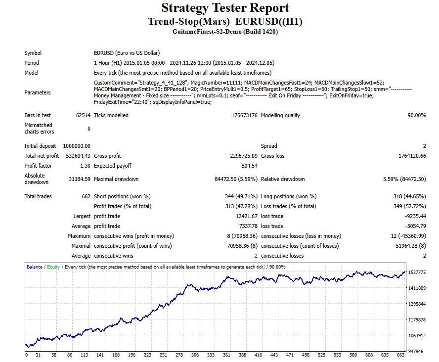『Trend-Stop(Mars)_EURUSD(H1)』は、EUR/USDの1時間足(H1)チャートに特化したMetaTrader 4(MT4)用のエキスパートアドバイザー(EA)です。