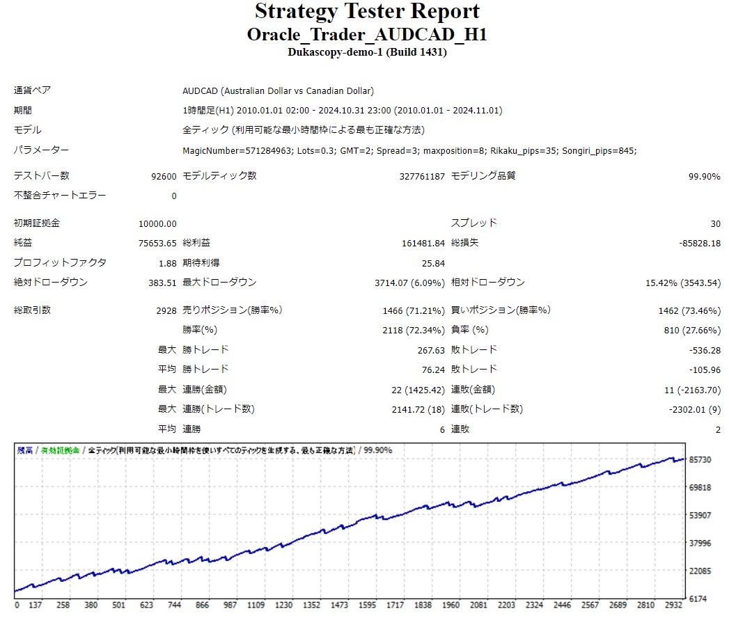 Oracle_Trader_AUDCAD_H1は、安定したパフォーマンスと徹底したリスク管理を両立するトレードシステムです。