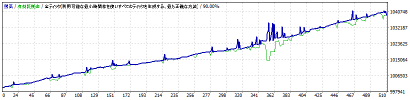 証拠金「1,000,000円」、「Lots=0.01」(0.01=1,000通貨単位)の最小ロットで実施しています。