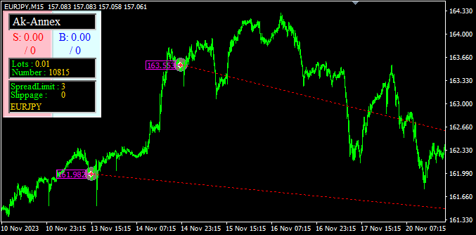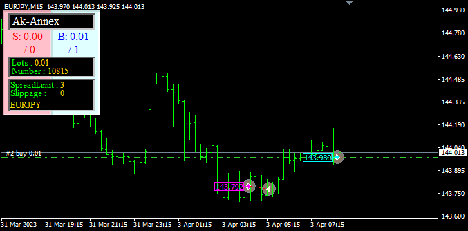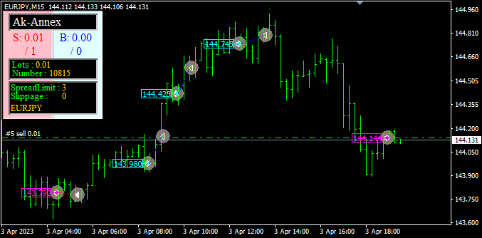 ・SL (Stop Loss): The set maximum loss pips (or specified amount, etc.) in the EA's settings