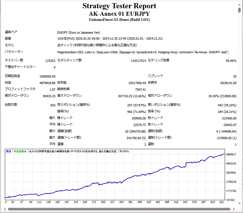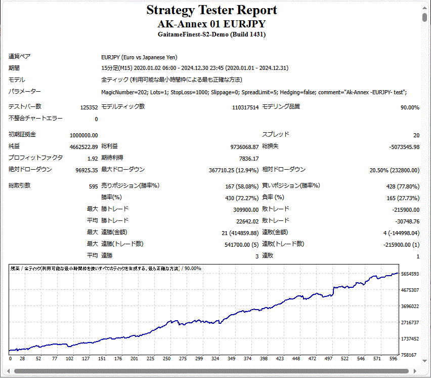5年「Lots=1.0」「Hedging=false」(両建てなし [規定値])