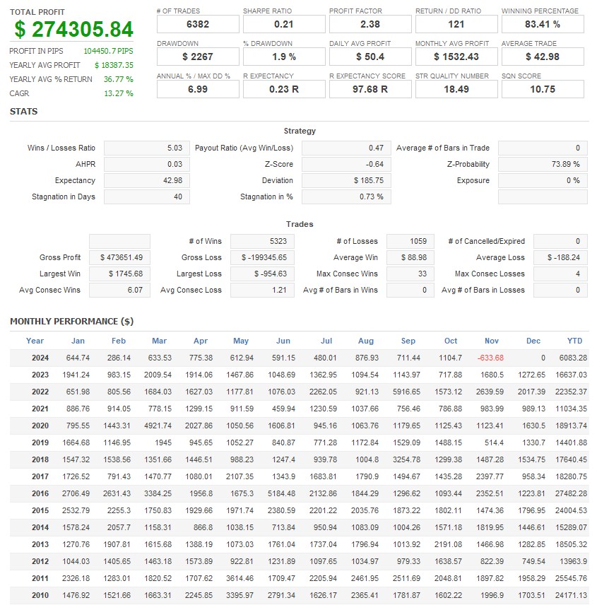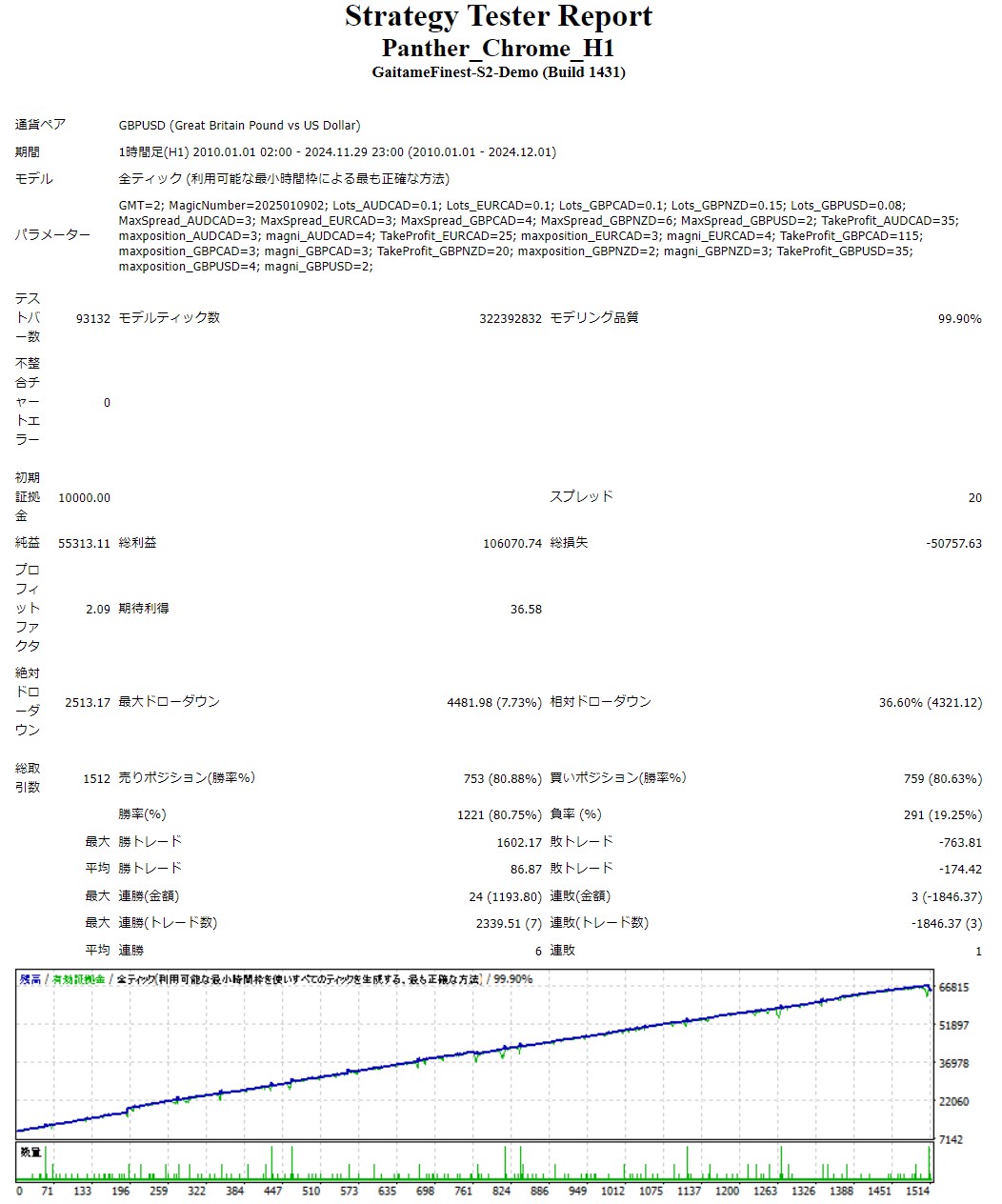 ✅ バックテスト期間:2010年~2024年の長期テスト結果。