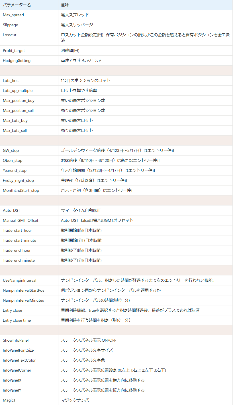 - ロット倍率、最大ポジション数、利確の目標額など自由に設定可能
