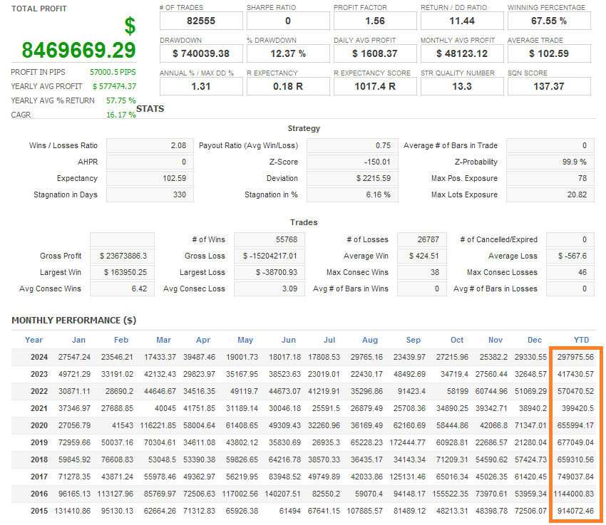 There is an absence of self-serving rule modifications, a common human tendency, such as increasing the lot size after consecutive losses in discretionary trading or, conversely, hastily securing profits with minimal gains.